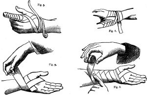 say a few words about bandages. A bandage or roller is simply a strip of calico,