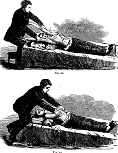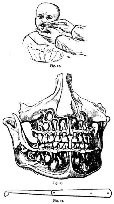 mother. The child being laid on its back, and the protrusion carefully returned