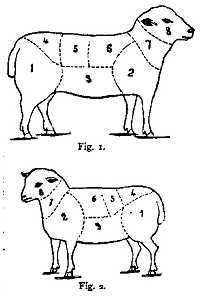 Lamb (Fig. 2).-1. Leg. 2. Shoulder. 3. Breast. 4. Chump end of loin.
