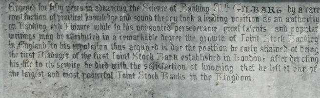 Yet it contained possibly the most grandiloquent epitath I had ever seen, belonging to James William Gilbart, Banker
